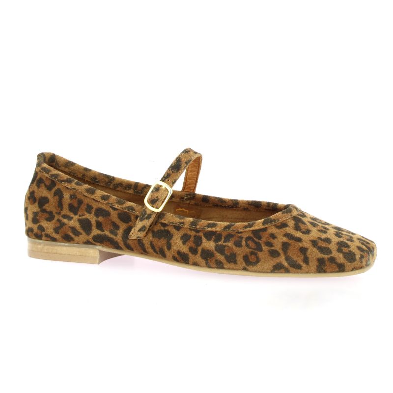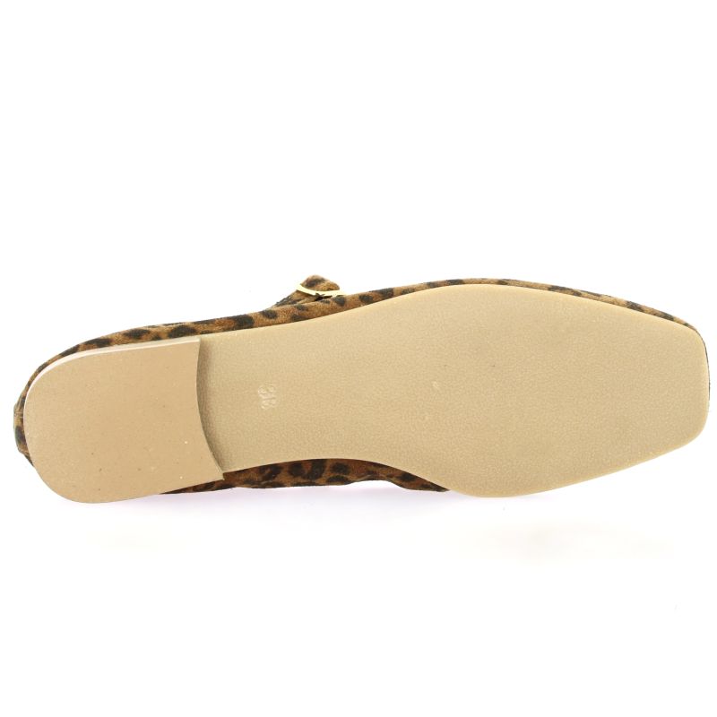 Ballerines We Do en cuir velours léopard avec bride et boucle dorée.