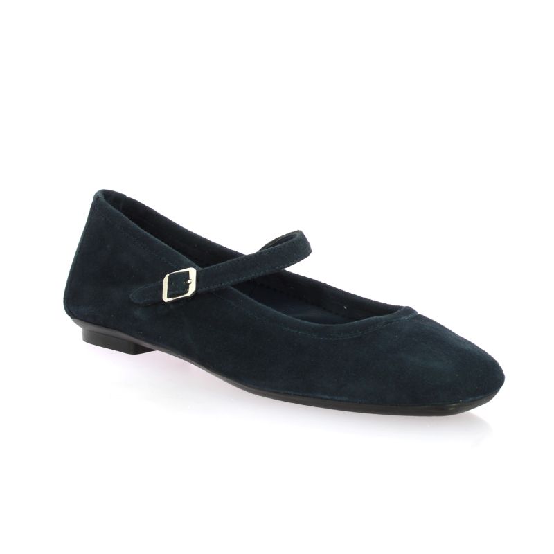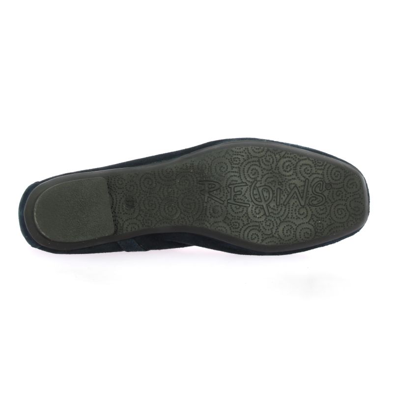 Ballerines en cuir velours bleu nuit de la marque Reqins, parfaites pour un look moderne et élégant.