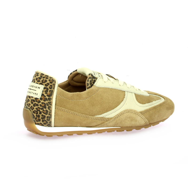 Ces baskets Palladium marient élégance et décontraction avec une tige en cuir velours beige sable.