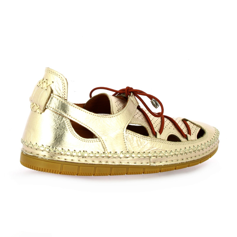 Cette basket basse Coco Abricot revisite le style hybride avec un cuir laminé or.