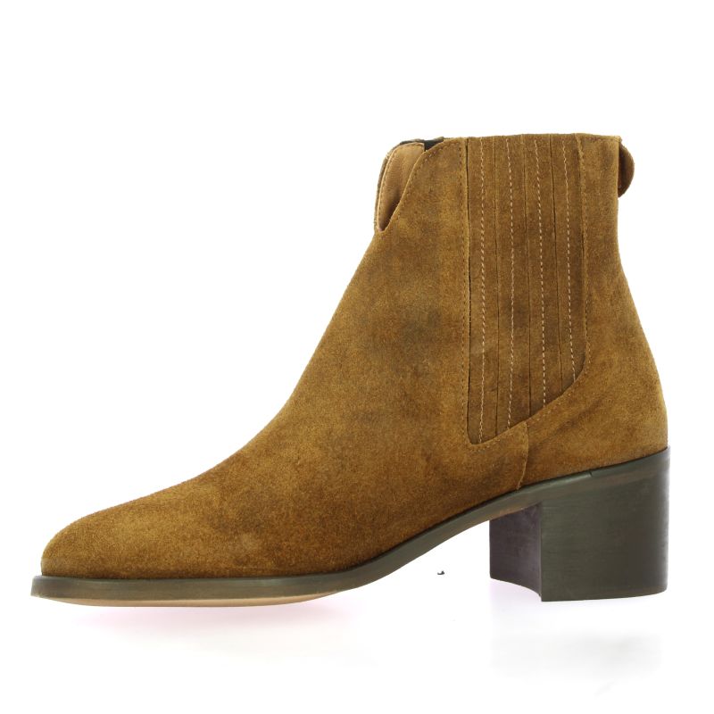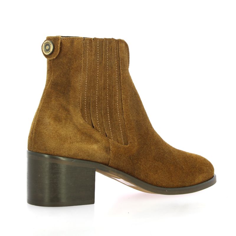 Boots Maroli en cuir velours cognac, coupe Chelsea classique.