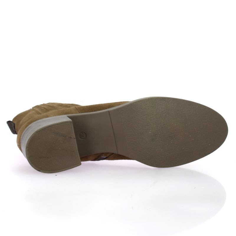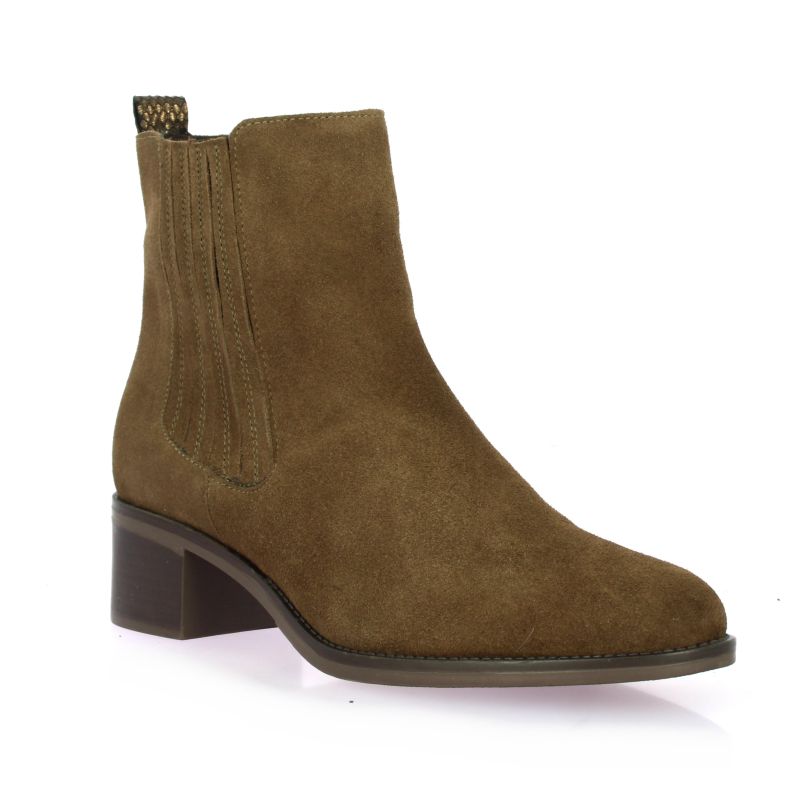 Boots We Do en cuir velours taupe, à la ligne épurée et actuelle.