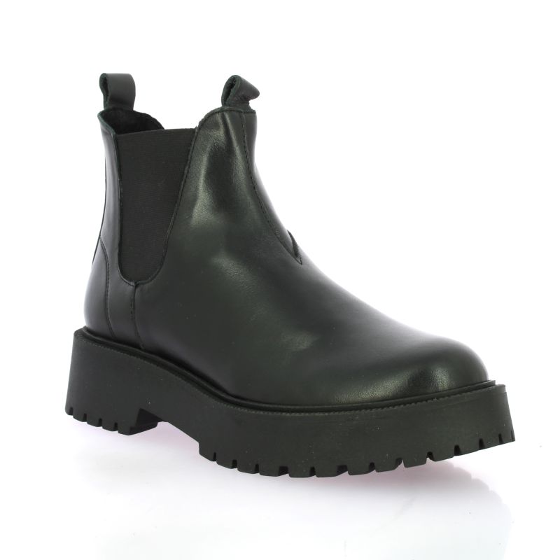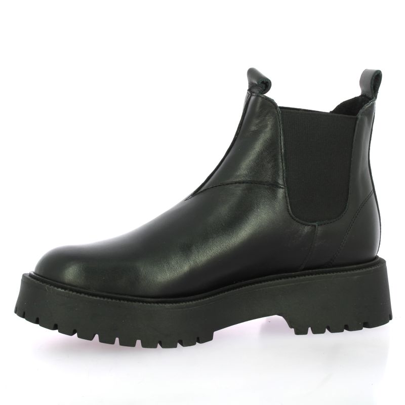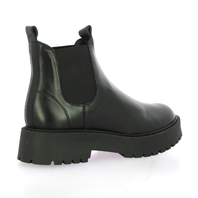 Boots chelsea We Do en cuir noir, dotées de larges élastiques noirs sur les côtés pour un enfilage facile.