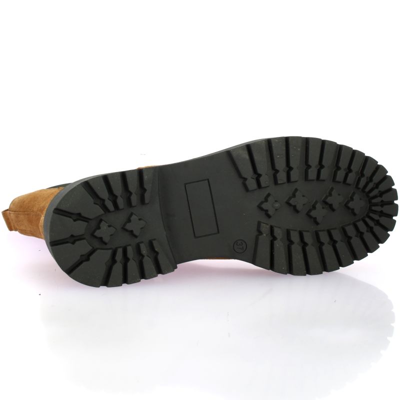 Chunky boots We Do en cuir velours cognac, à la silhouette sobre et moderne.