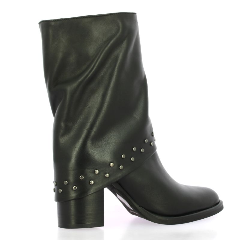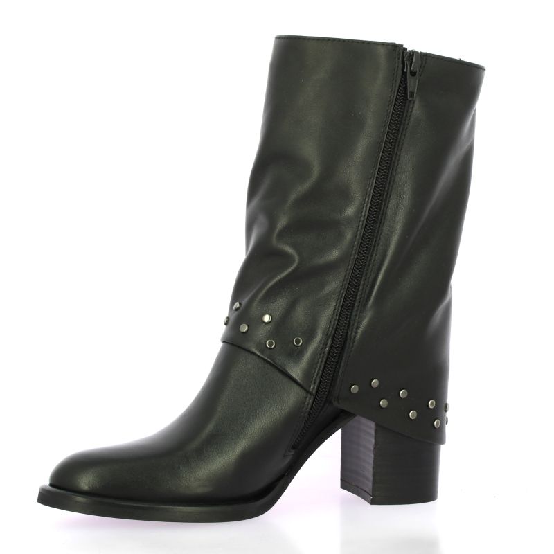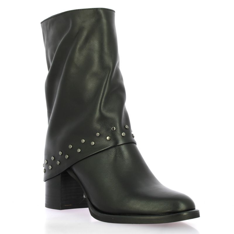 Boots Pao en cuir noir avec guêtre cloutée.