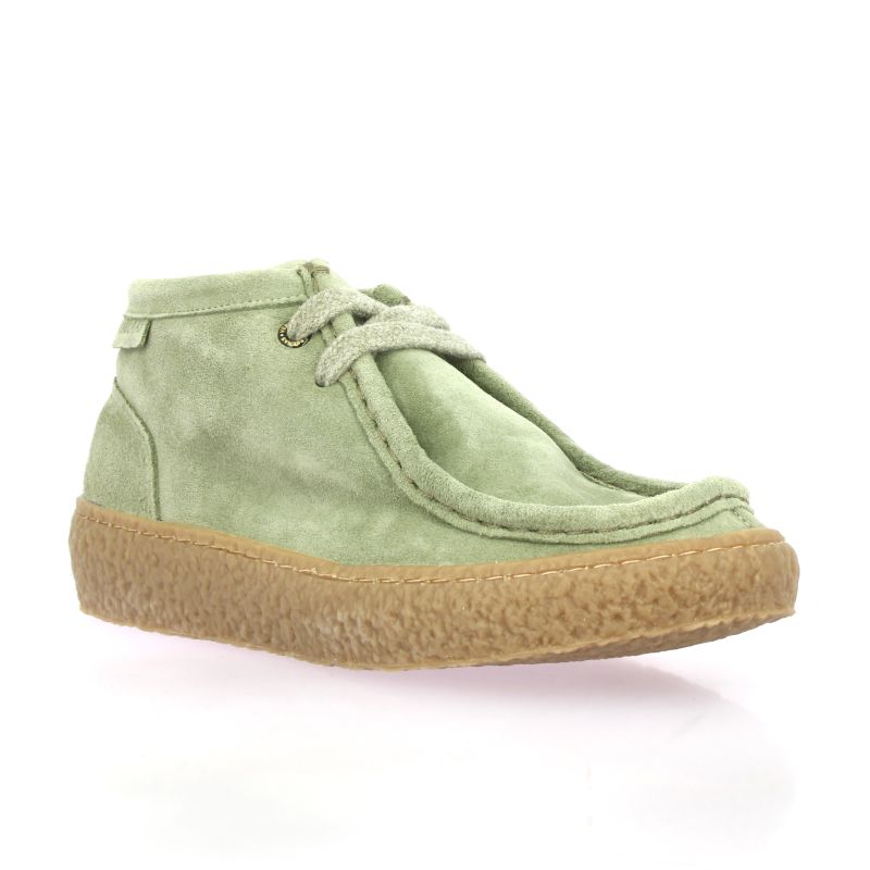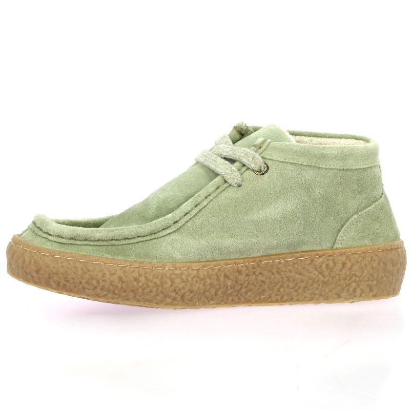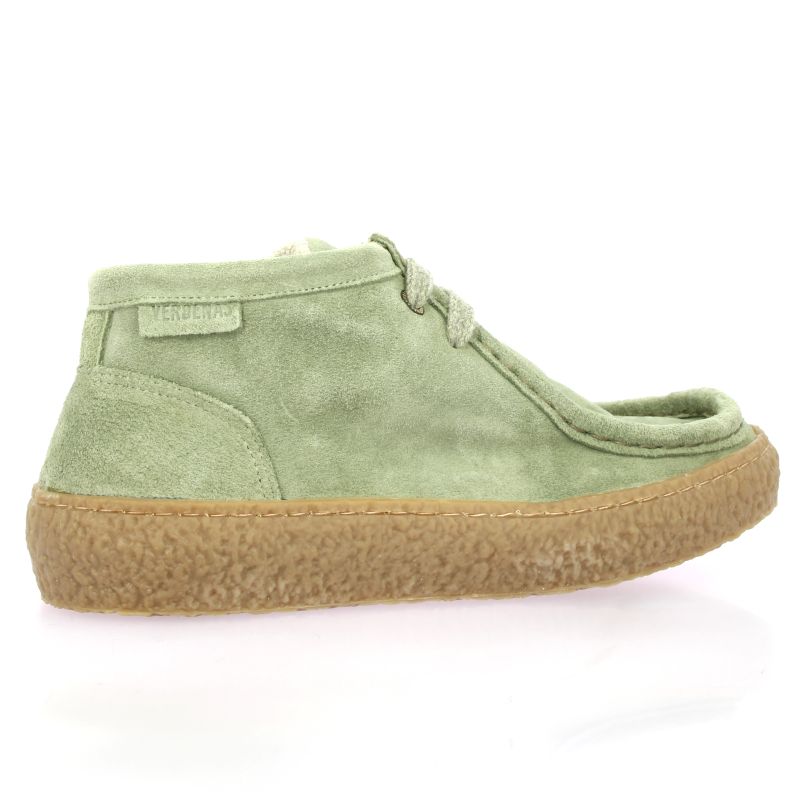 Boots Verbenas en cuir velours vert, élégantes et originales, avec semelle crêpe souple pour un confort maximal.