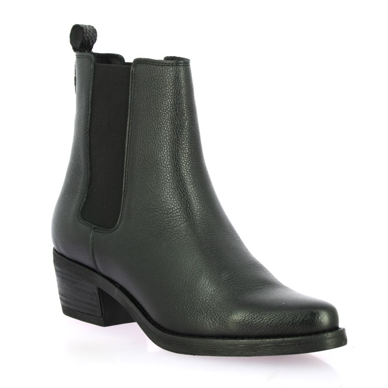 Chelsea boots We Do en cuir grainé noir, inspirées des lignes camarguaises et santiags.