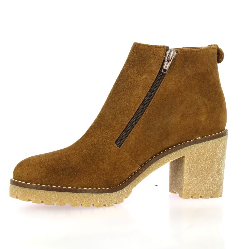 Boots Maroli en cuir, à semelle et talon crêpe, dotées de deux fermetures sur le cou-de-pied.
