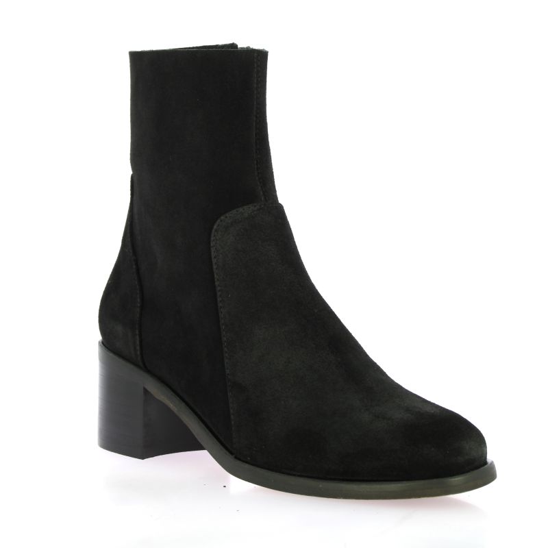 Boots Maroli en cuir velours noir, simples et élégantes, avec talon bloc confort.