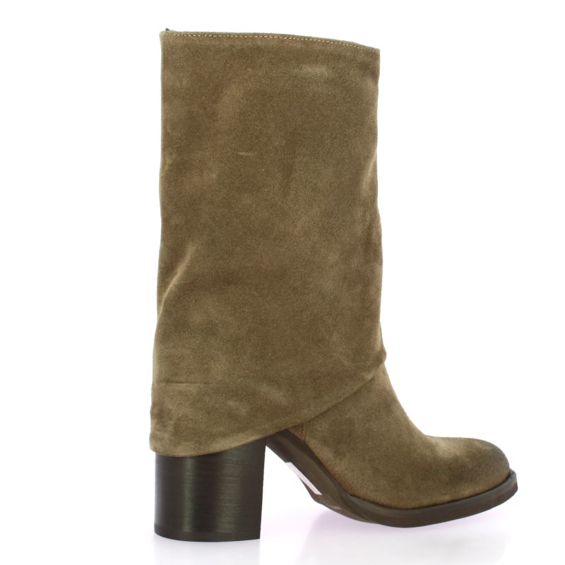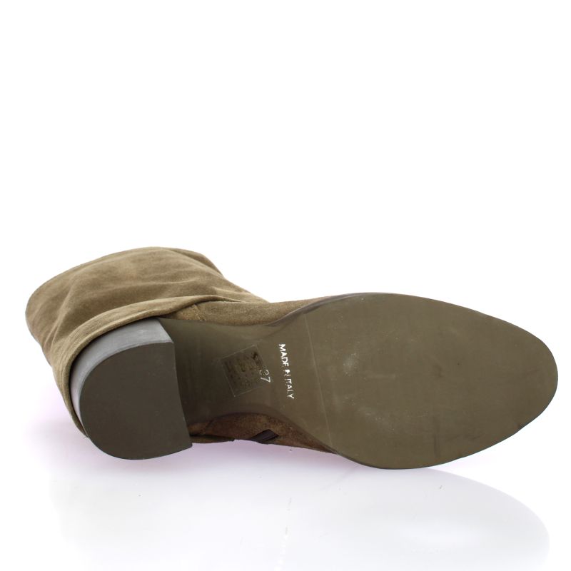 Boots branchées Pao à guêtres en cuir velours taupe au talon confort