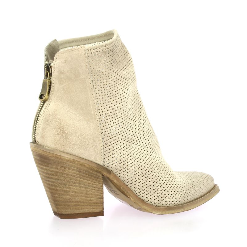 Santiags Métisse en cuir perforé beige au design moderne et élégant.