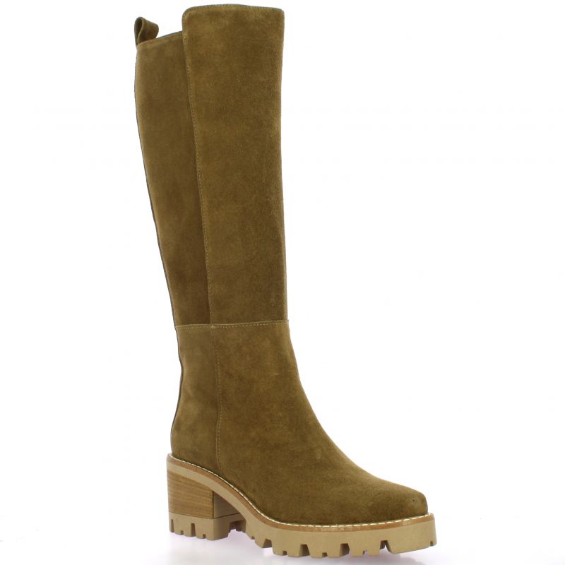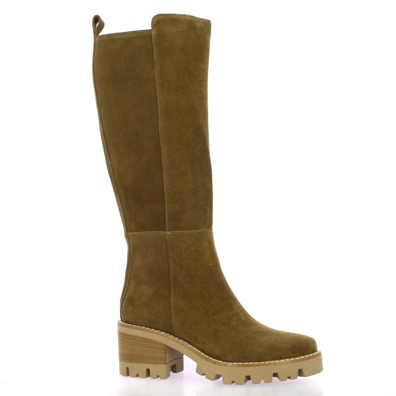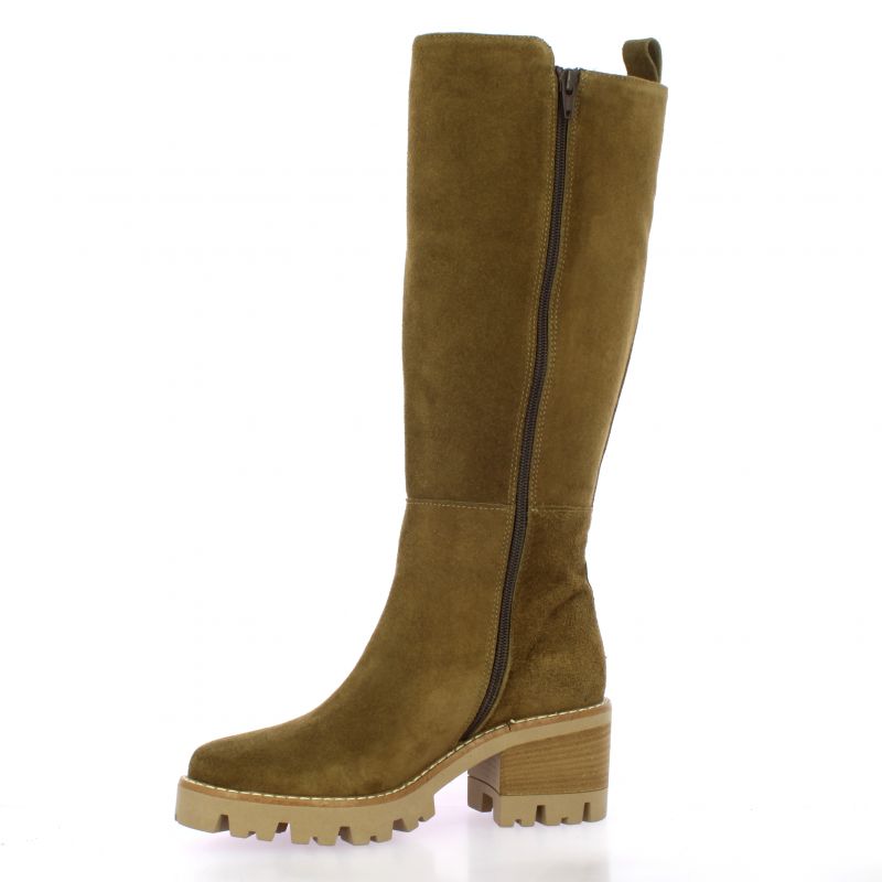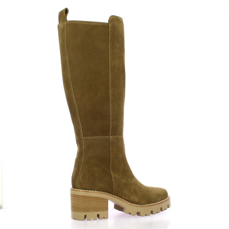 Élégante et moderne, cette botte en cuir velours camel Pao est le choix idéal pour celles qui recherchent à la fois style et confort.
