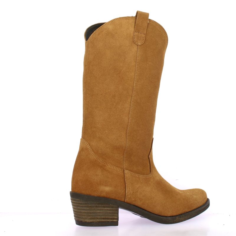 Bottes So Send en cuir velours cognac, au design inspiré des santiags.