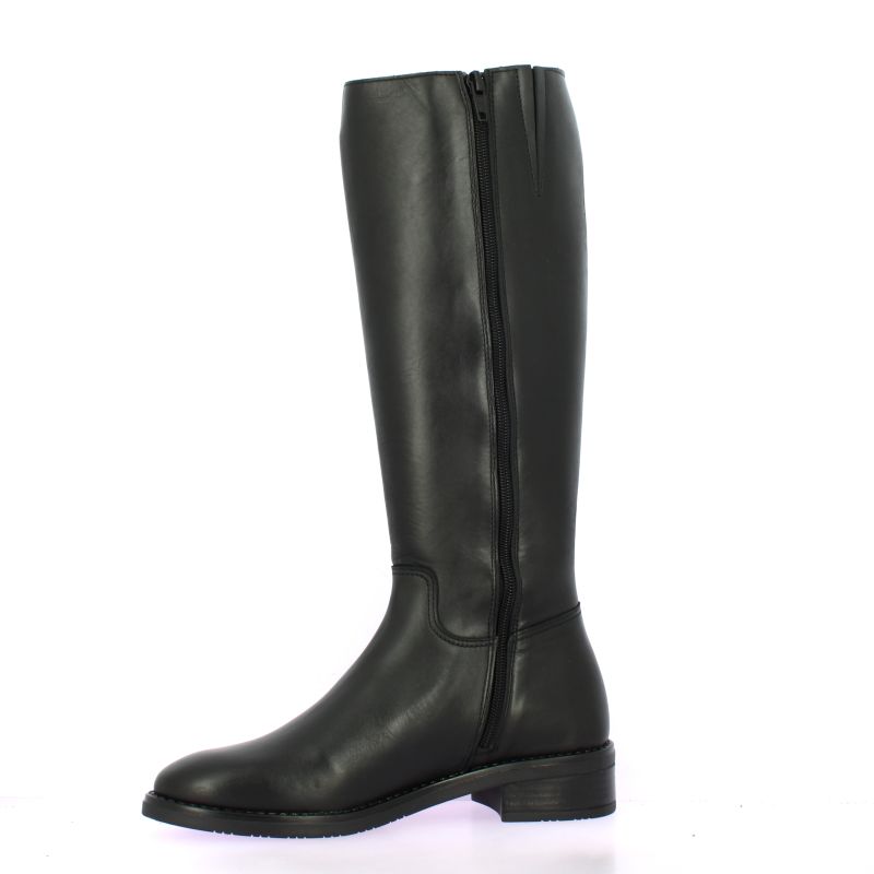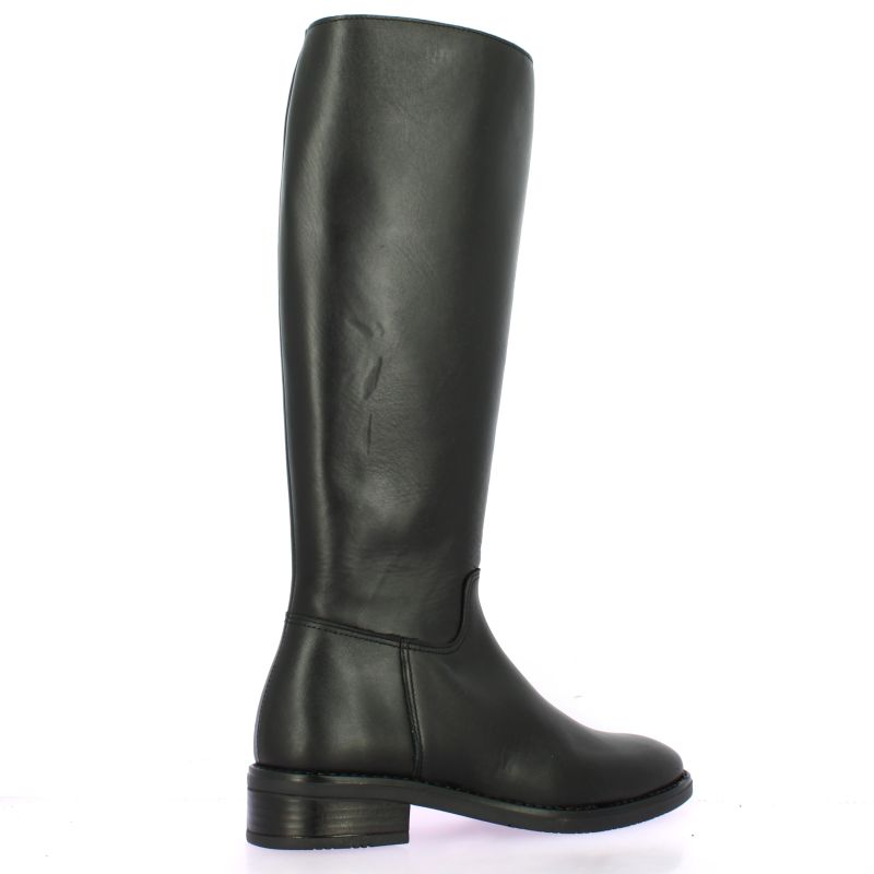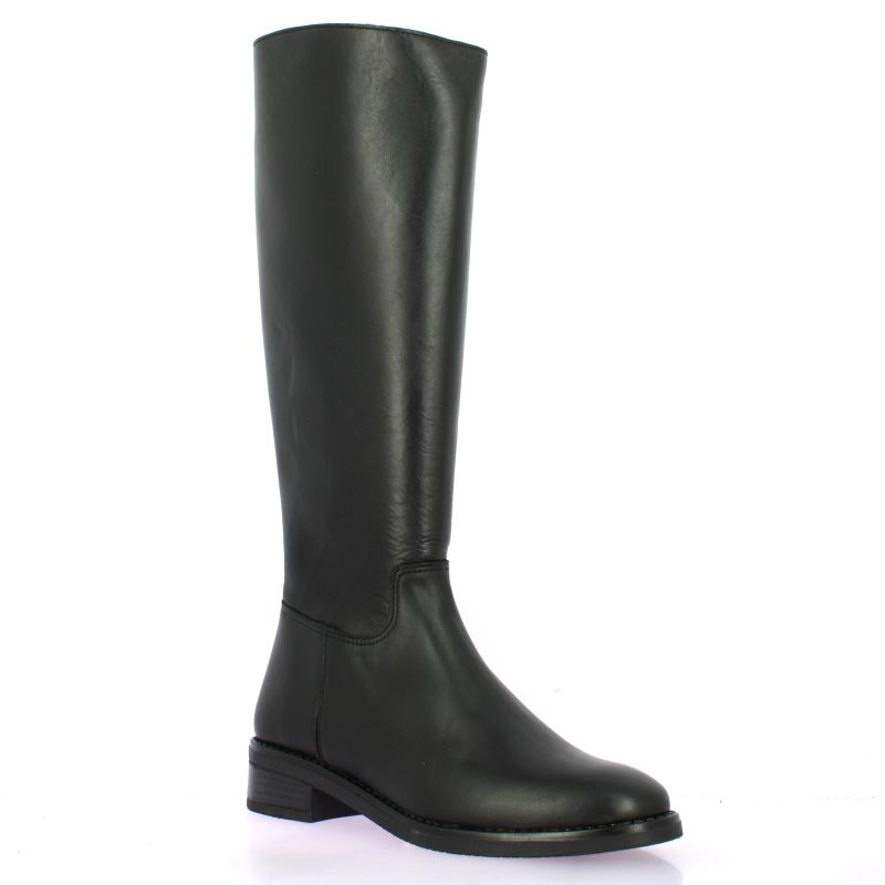 Ces bottes cavalières So Send en cuir noir conjuguent allure et sobriété.
