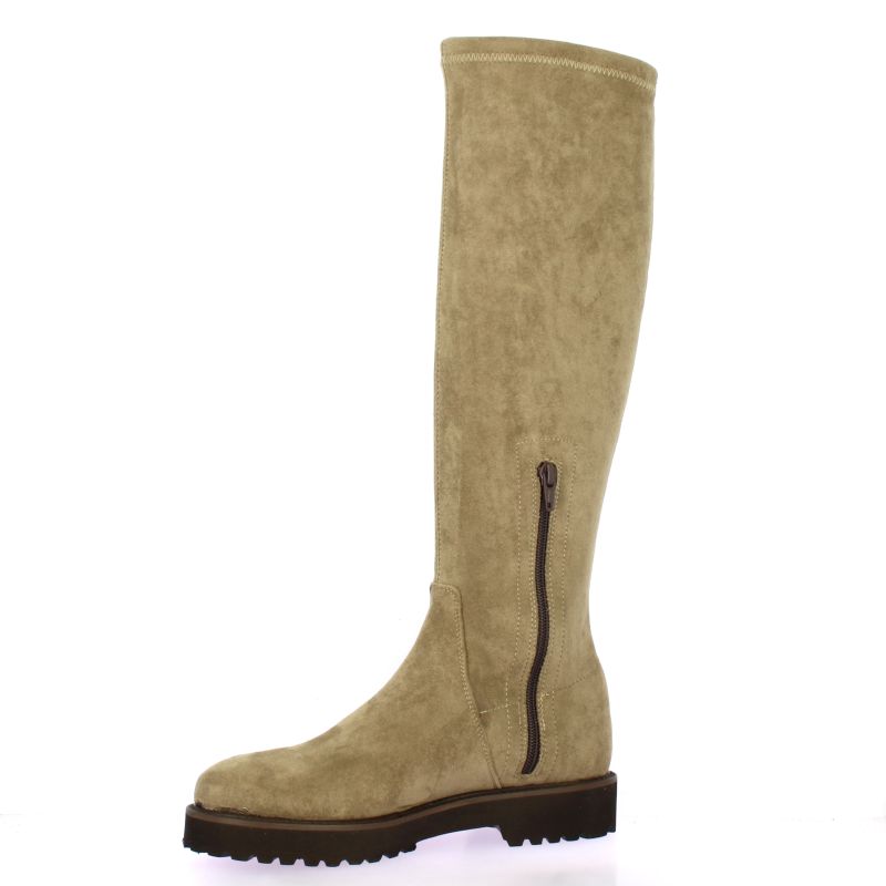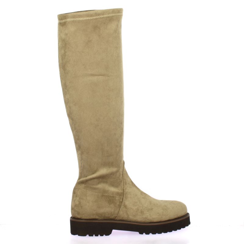 Bottes Pao en stretch velours taupe au design épuré et actuel.