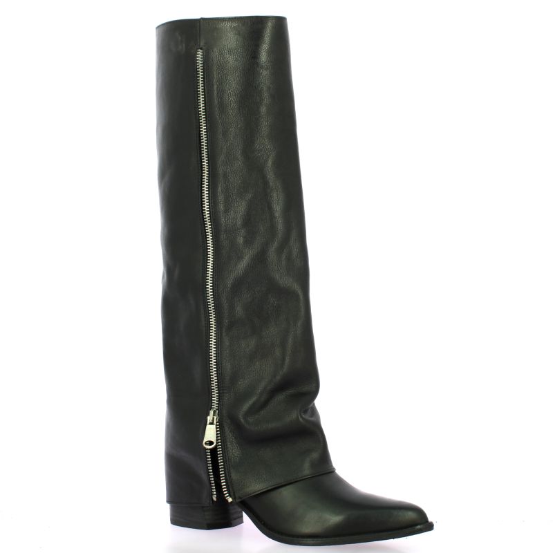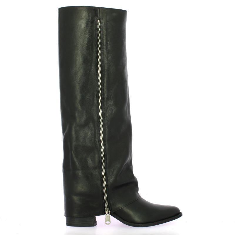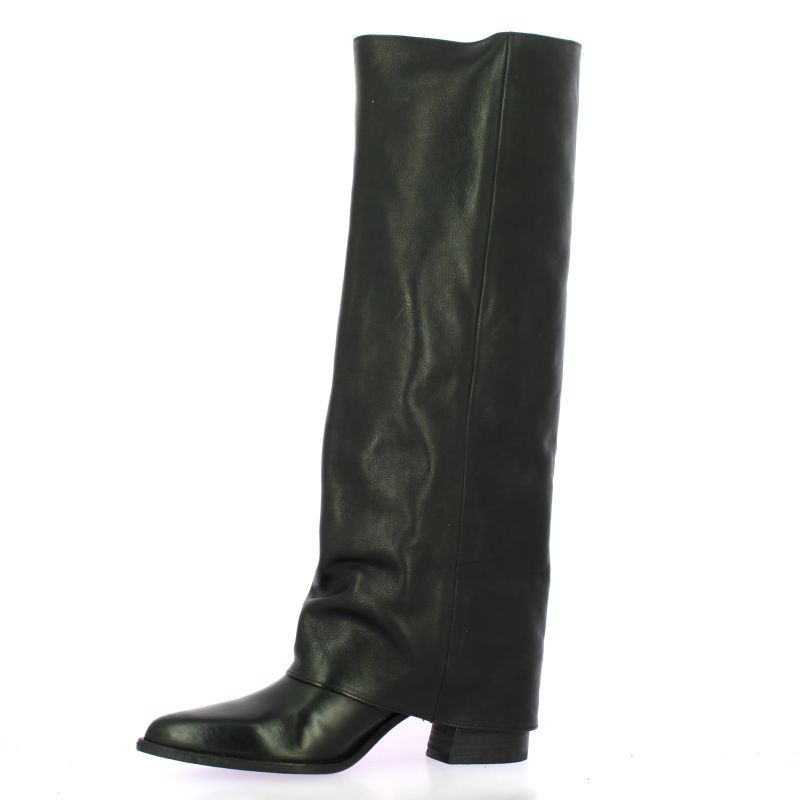 Botte Gianni Crasto féminine au style affirmé, réalisée en cuir noir souple pour un tombé naturel.