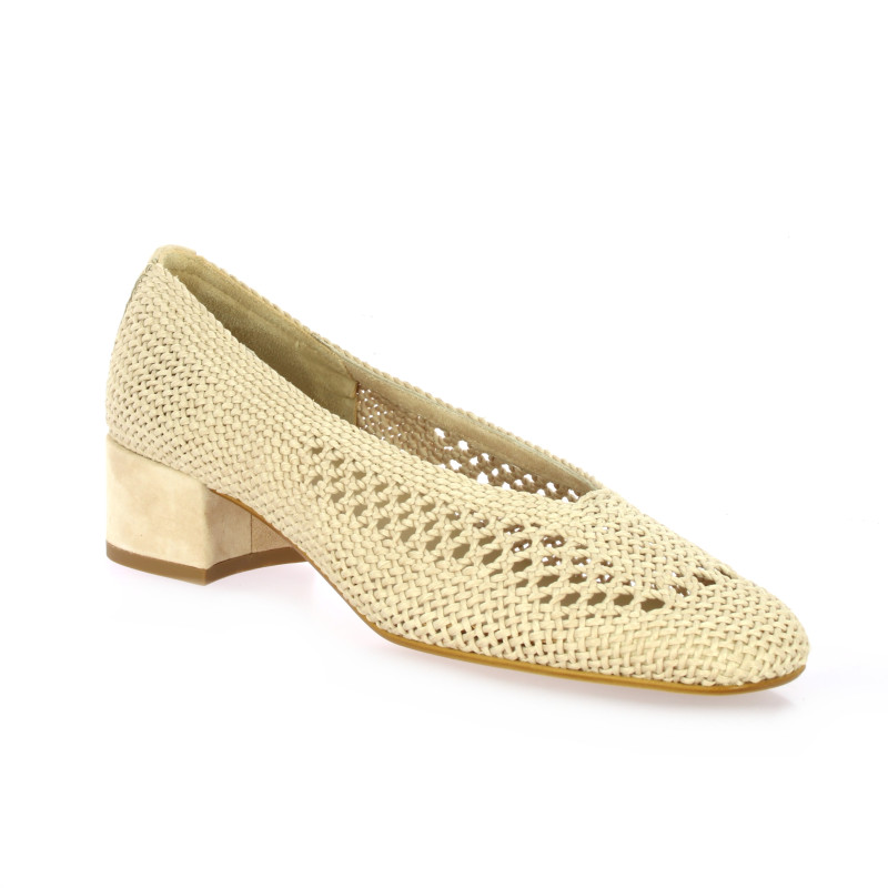 Cet escarpin ballerine Reqins en maille crochetée naturelle incarne une élégance douce et artisanale.