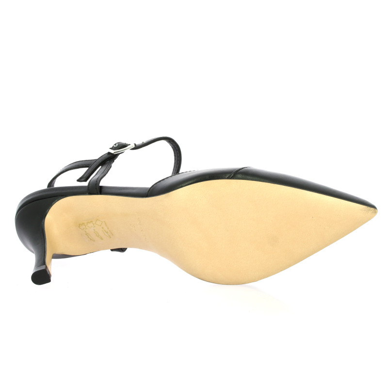 Sa silhouette se distingue par un bout très pointu et un talon aiguille moyen qui élancent la jambe avec finesse.