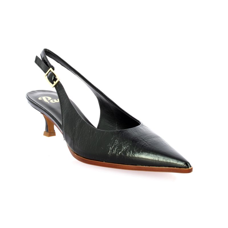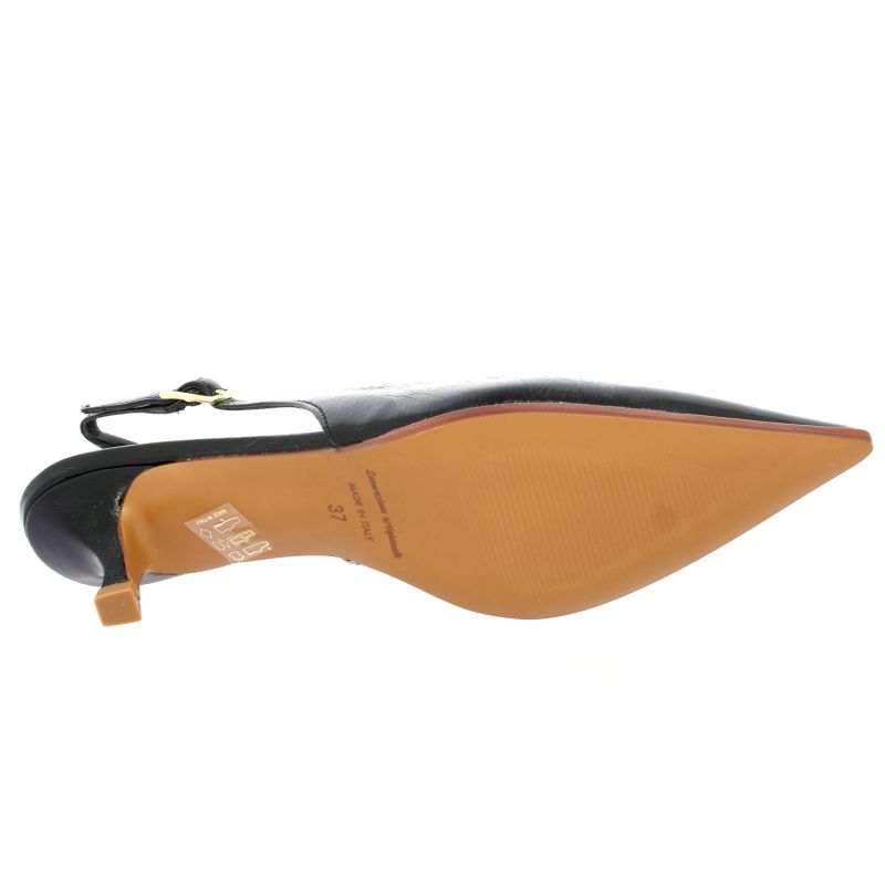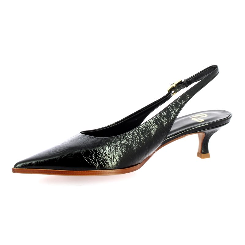 Cet escarpin Slingback Pao en cuir verni noir incarne une élégance intemporelle et sophistiquée.