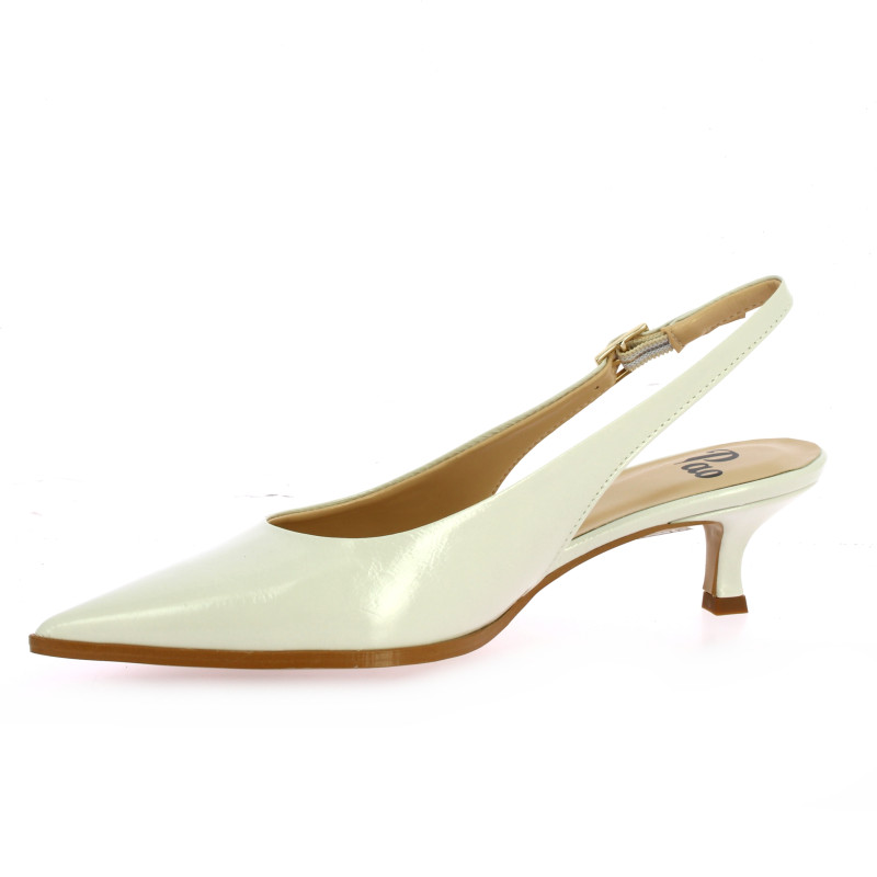 Cet escarpin slingback Pao en cuir verni blanc incarne la sophistication pure.
