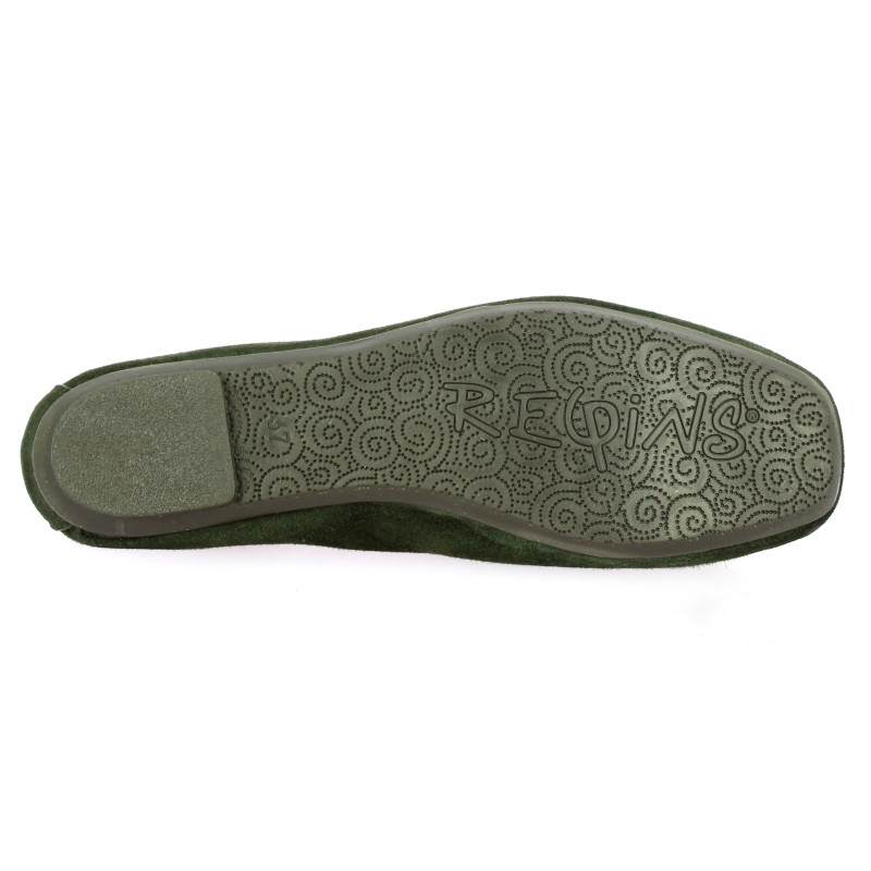 Ce mocassin signé Reqins se pare d'un cuir velours d'un vert forêt élégant et profond.
