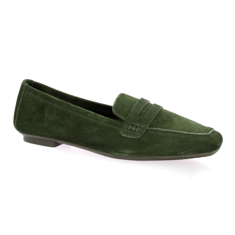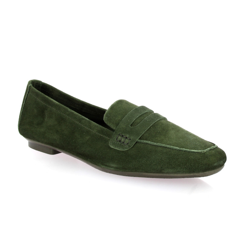 Ce mocassin signé Reqins se pare d'un cuir velours d'un vert forêt élégant et profond.