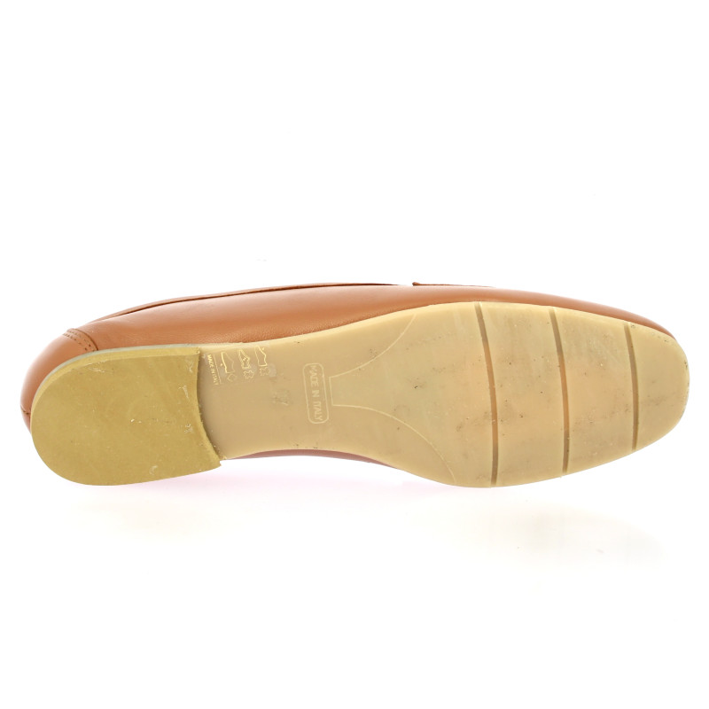 Ce mocassin Pao arbore un cuir lisse couleur cognac au fini impeccable.