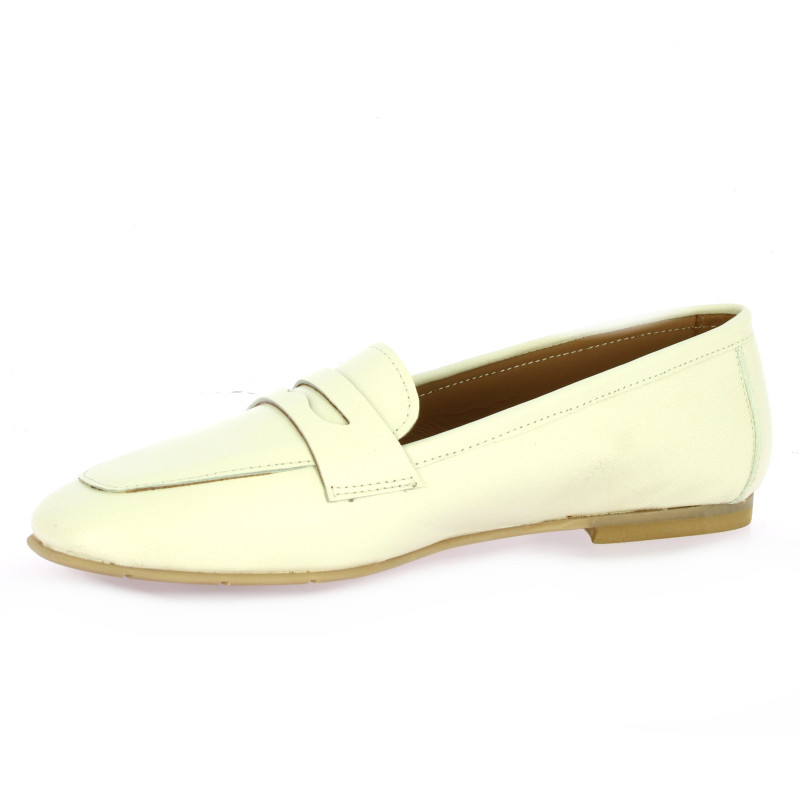 Ce mocassin Pao se décline dans un cuir lisse crème pour une allure fraîche et lumineuse.
