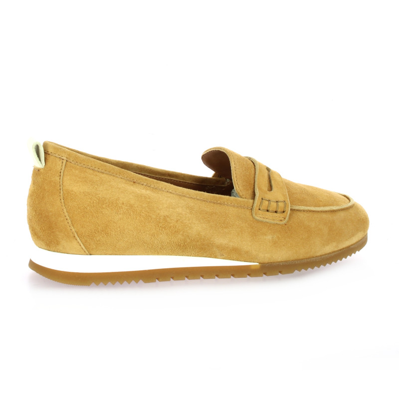 Ce mocassin Reqins en cuir velours camel revisite le grand classique avec une touche de modernité décontractée.