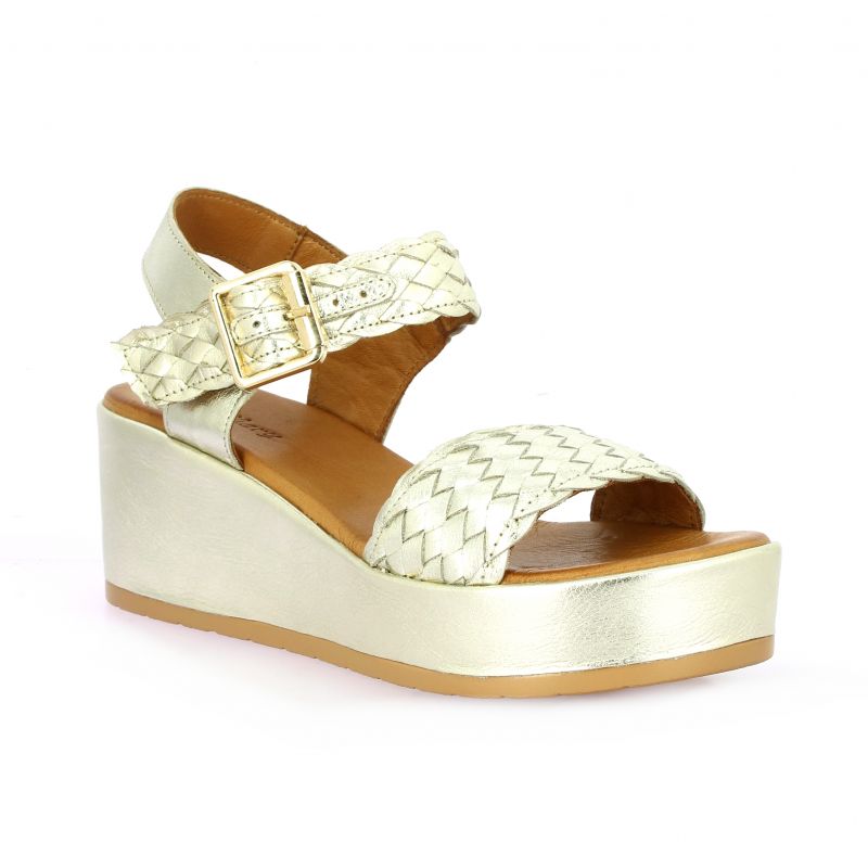 Nu-pieds en cuir laminé doré K. Mary.