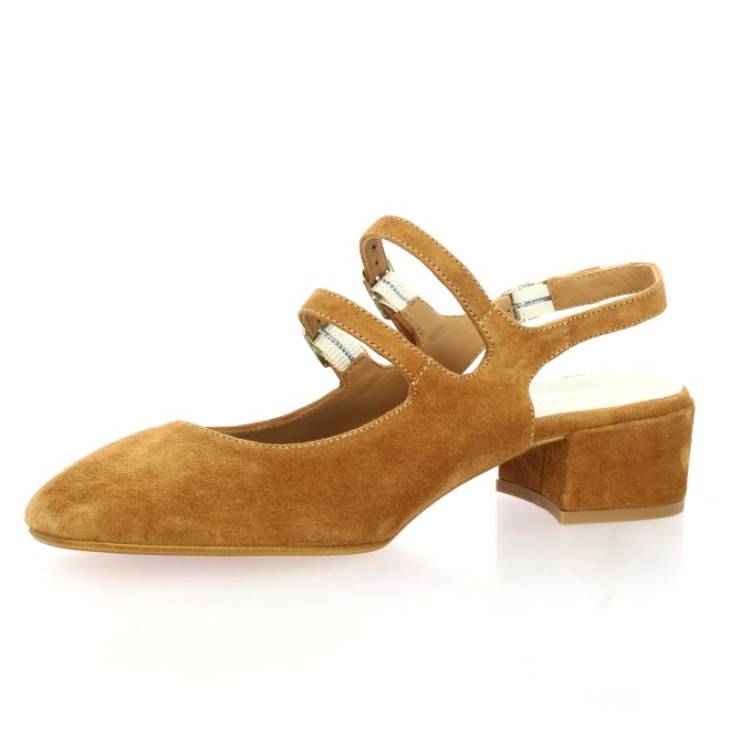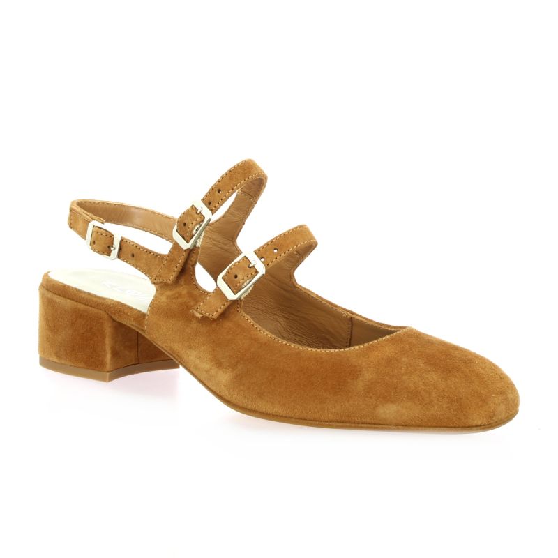Les ballerines babies Reqins en velours camel à talon et double bride apportent élégance et sophistication à votre look.
