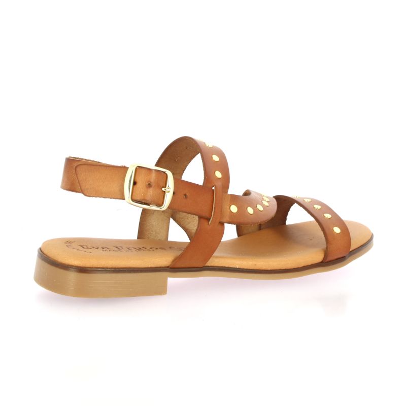 Ces sandales Eva Frutos en cuir cognac se distinguent par leurs brides croisées agrémentées de petits clous dorés circulaires.