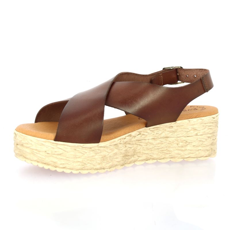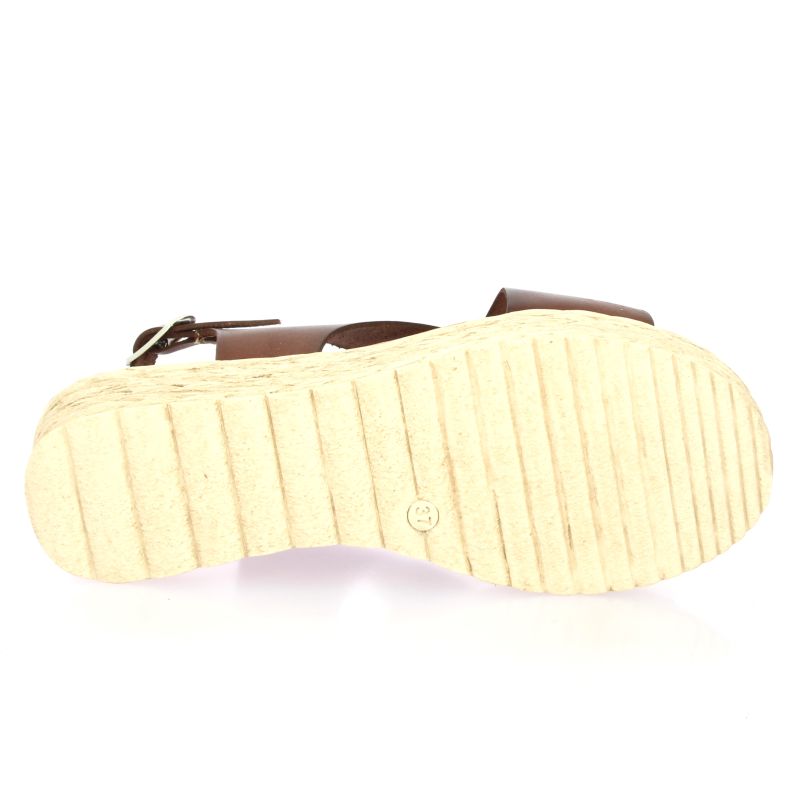 Sa semelle plateforme compensée en corde assure une marche stable et confortable tout au long de la journée.
