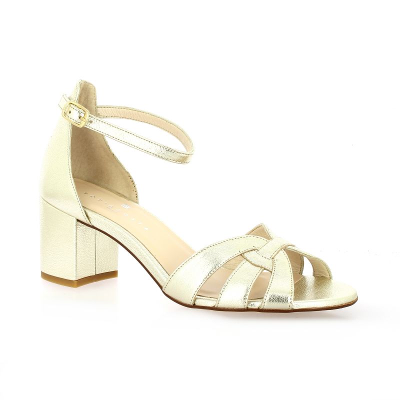 Cette sandale Sofia Costa en cuir métallisé doré illumine vos tenues de cérémonie ou de soirée.